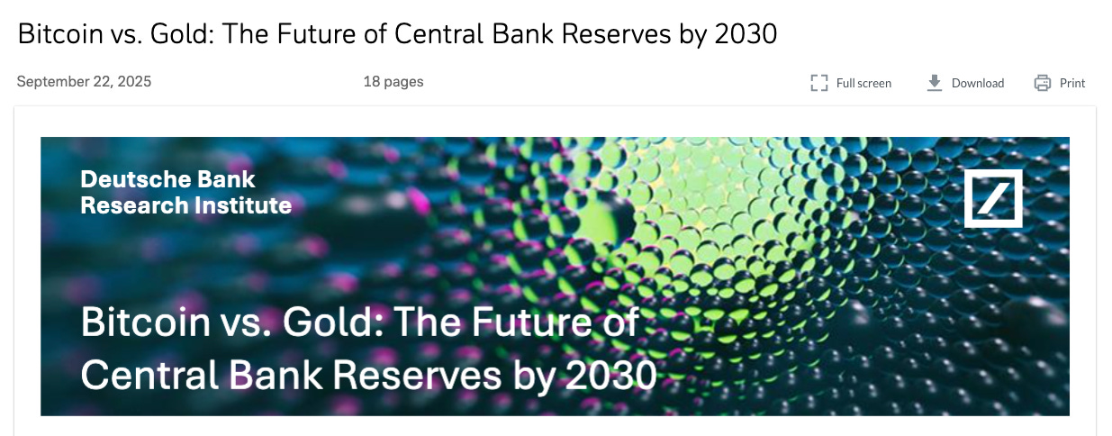 Analysten der Deutschen Bank erwarten, dass Bitcoin bis 2030 ähnlich wie Gold auf den Bilanzen von Zentralbanken koexistieren wird.