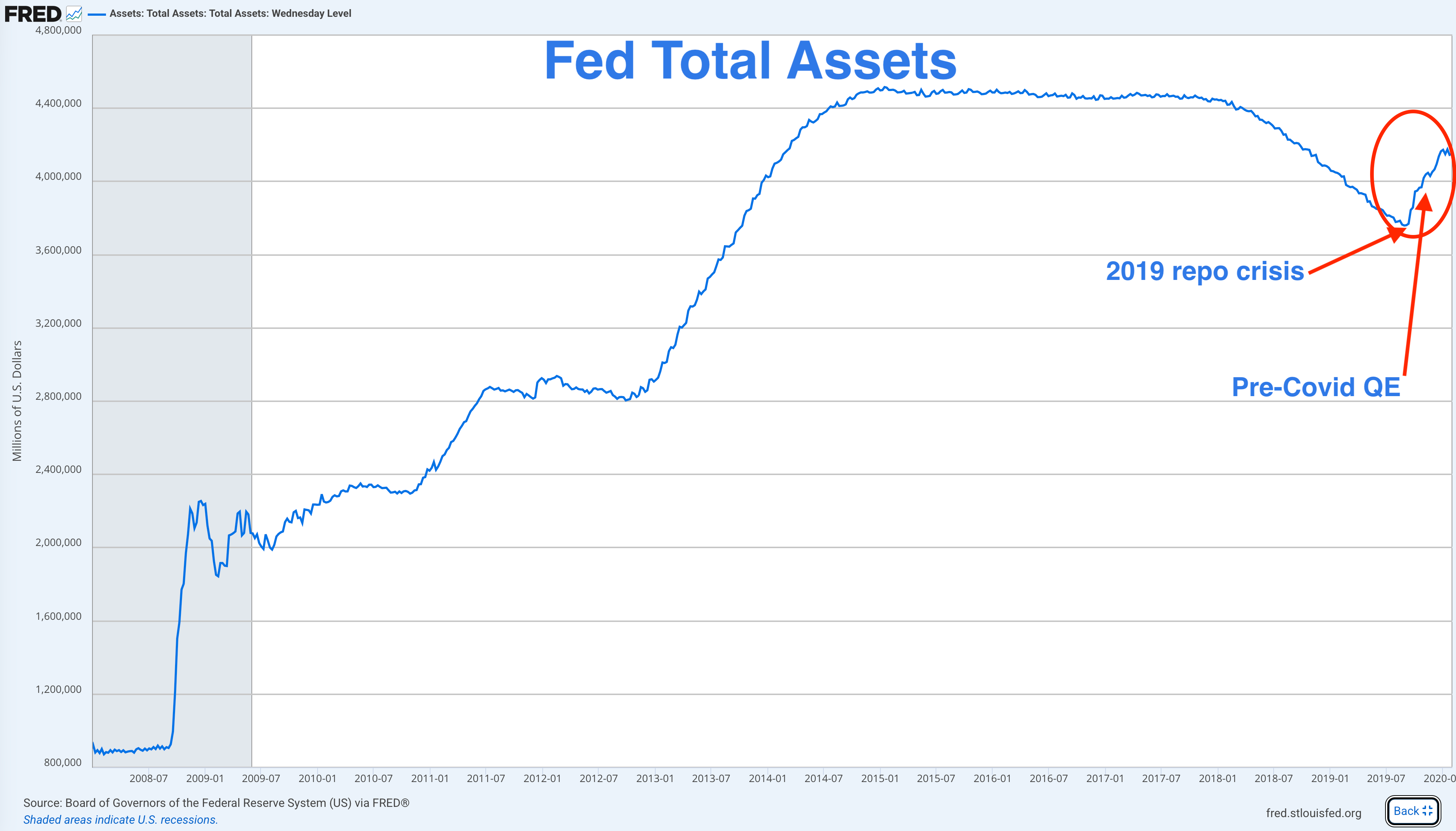 Auch wenn sie es nicht als QE bezeichnen, so hat diese Bilanzausweitung den genau gleichen Effekt. Das letzte Mal sahen wir eine ähnliche Situation im September 2019. Innerhalb von vier Monaten erhöhte die FED ihre Bilanz um über 400 Milliarden US-Dollar. Als Reaktion stieg Bitcoin um 60 %.